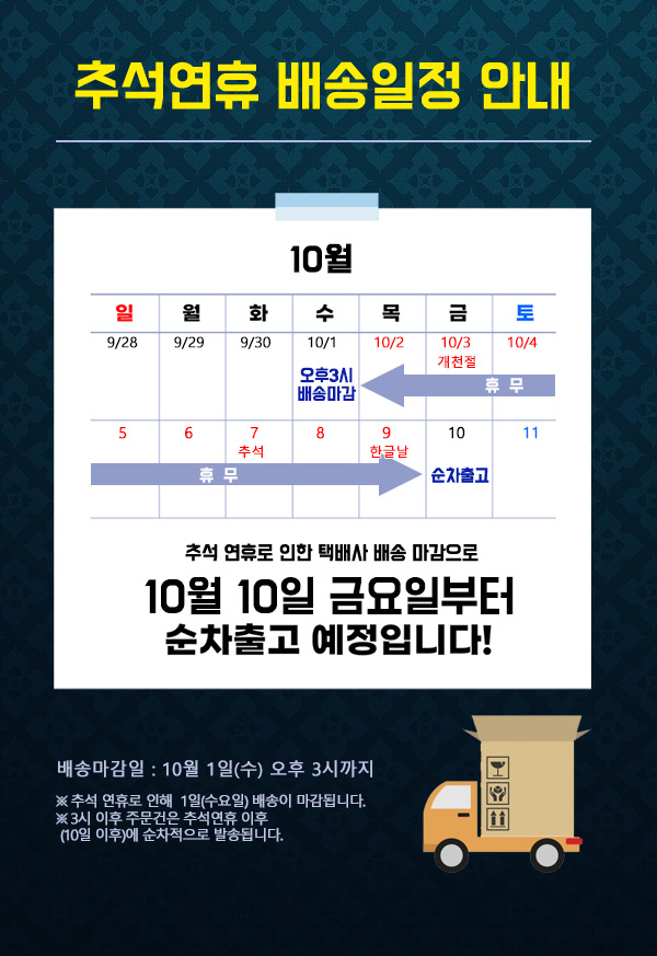 Ãß¼® ¿¬ÈÞ ¹è¼Û¸¶°¨ ÀÏÁ¤ (10/1 ¹è¼Û¸¶°¨)